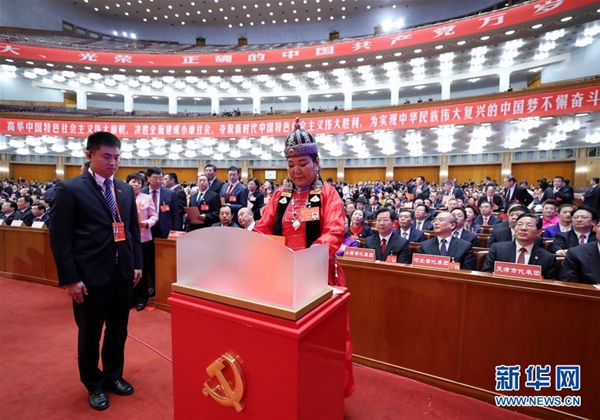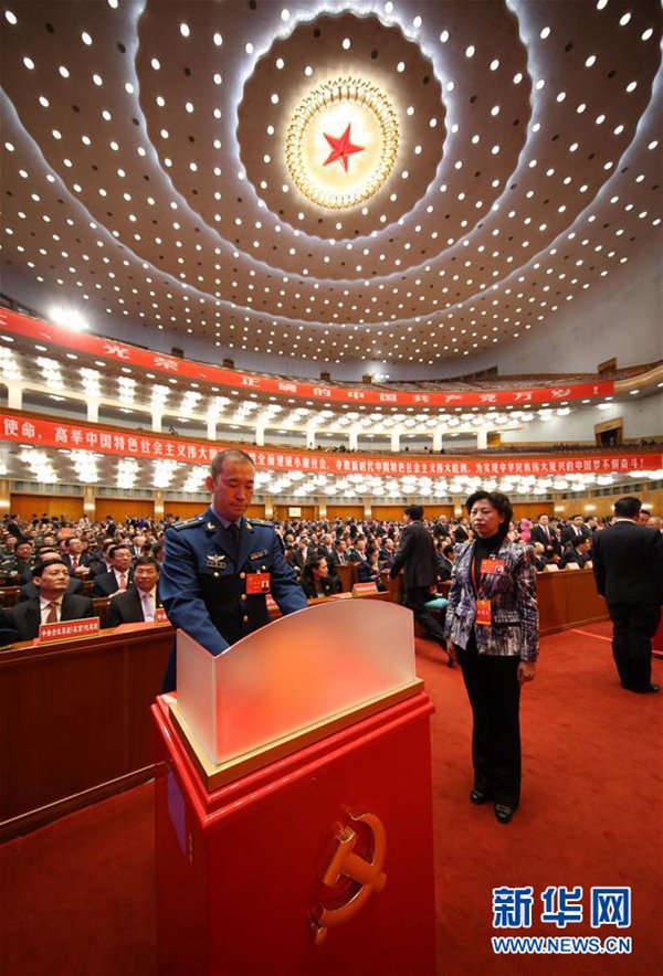 10月24日,中國(guó)共產(chǎn)黨第十九次全國(guó)代表大會(huì)閉幕會(huì)在北京人民大會(huì)堂舉行。這是代表投票選舉中央委員會(huì)委員、候補(bǔ)委員和中央紀(jì)律檢查委員會(huì)委員。新華社記者 龐興雷 攝