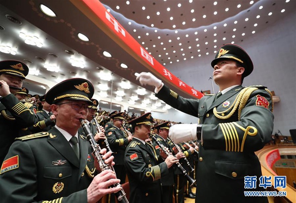 10月24日,中國(guó)共產(chǎn)黨第十九次全國(guó)代表大會(huì)閉幕會(huì)在北京人民大會(huì)堂舉行。這是軍樂(lè)團(tuán)奏《國(guó)際歌》。 新華社記者 王曄 攝