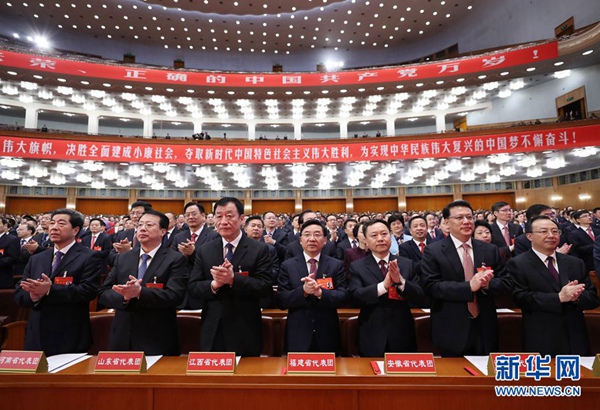 10月24日,中國(guó)共產(chǎn)黨第十九次全國(guó)代表大會(huì)在北京人民大會(huì)堂舉行閉幕會(huì)。這是代表步入會(huì)場(chǎng)。 新華社記者 殷剛 攝