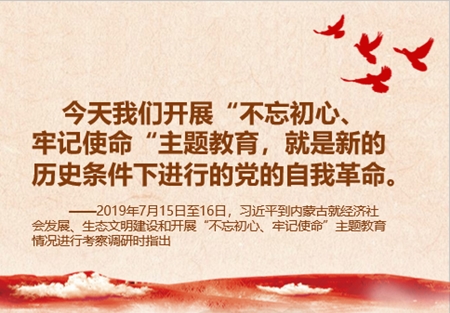 ——2019年7月15日至16日,習(xí)近平到內(nèi)蒙古就經(jīng)濟(jì)社會(huì)發(fā)展、生態(tài)文明建設(shè)和開(kāi)展“不忘初心、牢記使命”主題教育情況進(jìn)行考察調(diào)研時(shí)指出